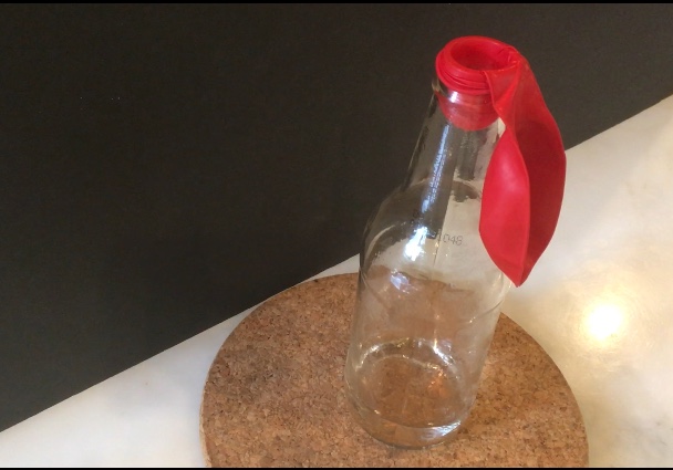 • Watch as the balloon slowly creeps into the bottle (you will have to be patient, it may take a couple of minutes).